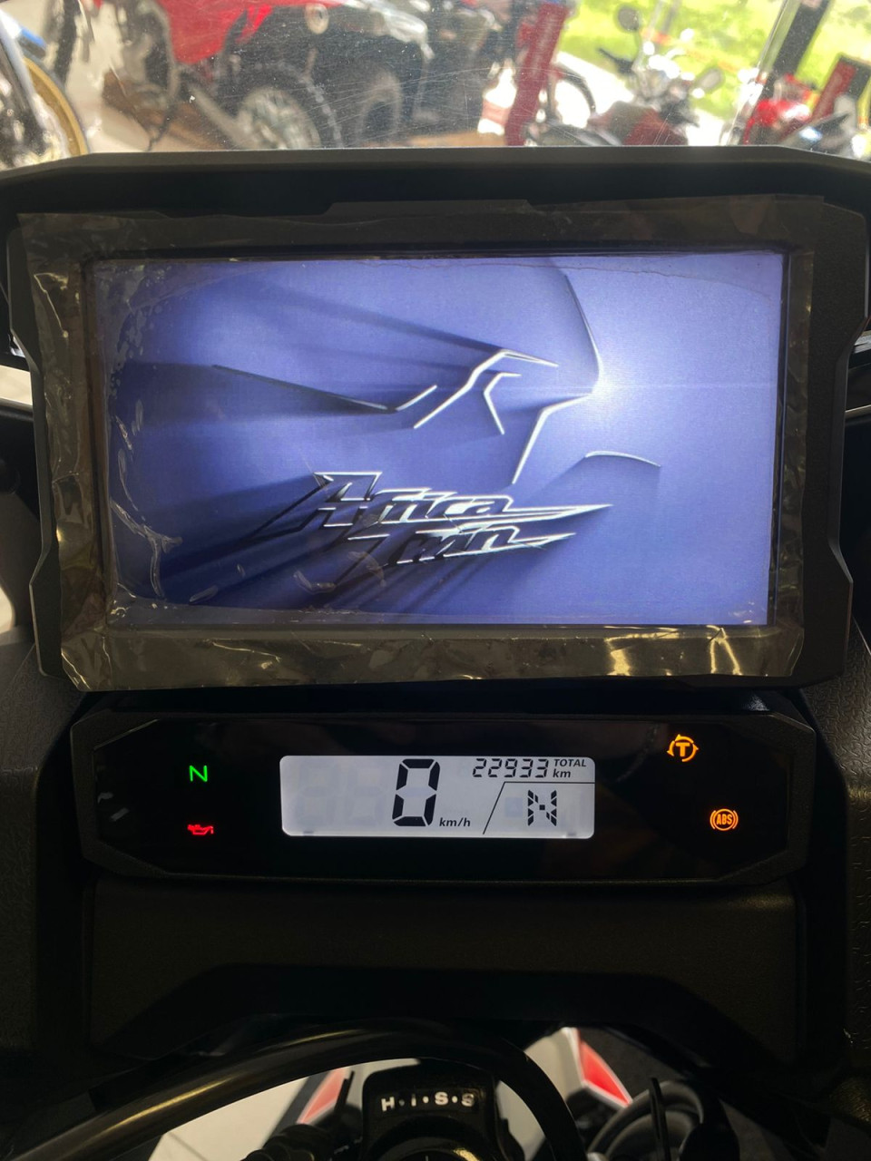 Suspensão Dianteira/Curso: Garfo invertido Showa de 45 mm com ajuste de pré-carga, curso de 230 mm